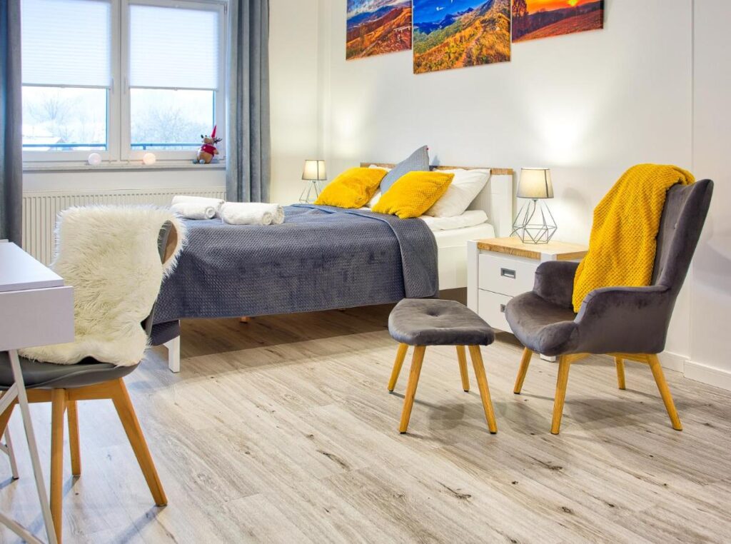Apartament Rodzinny to nie tylko miejsce do spania, ale także przestrzeń do wspólnego gotowania, relaksu i spędzania czasu razem. Dzięki w pełni wyposażonej kuchni możesz przygotować domowe posiłki, a wygodne meble zapewnią komfortowy wypoczynek po całym dniu aktywności.