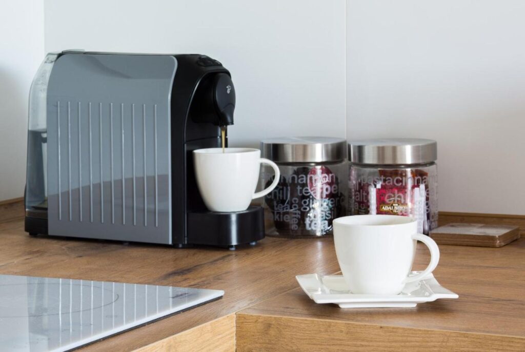 Znajdziesz tu wszystko, czego potrzebujesz, aby przygotować domowe posiłki: lodówkę, zmywarkę, kuchenkę mikrofalową, płytę kuchenną, ekspres do kawy, czajnik elektryczny, toster, a także komplet przyborów kuchennych i naczynia.
